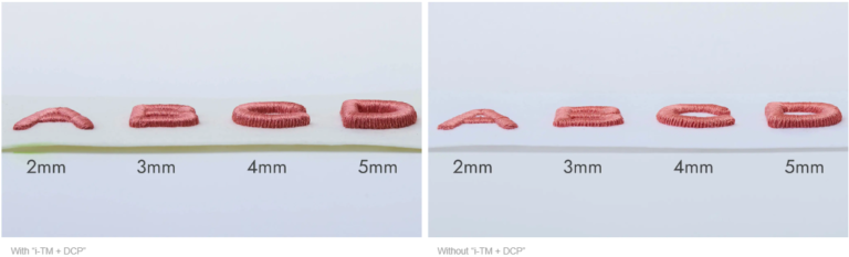 Optimal upper thread supply, unaffected by material or design, results in high quality embroidery at all times. Even materials that are difficult to adjust for, such as thin summer fabrics in particular, can be finished beautifully. The DCP sensor also allows the upper thread volume to be changed even for items that are thicker in one part, such as hoodies. No need to change embroidery machine settings when changing to items such as T-shirts, uniforms, hats,