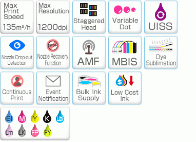 - Newly developed heads to ensure high-quality print even at a high speed