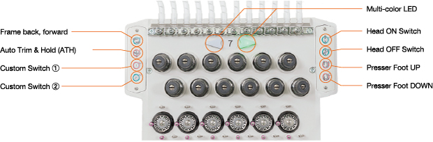 Various operation switches and multi-color LEDs are located on the each head. Since all of the main functions of the operation panel can be manipulated from each head, the working efficiency of operators has been improved.