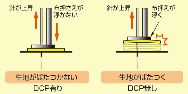 The height of the presser foot can be set to the material thickness on the operation panel.