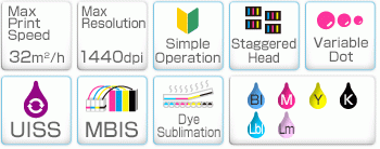 High print speed of 32sqm/h (Effective only at 4-color mode)